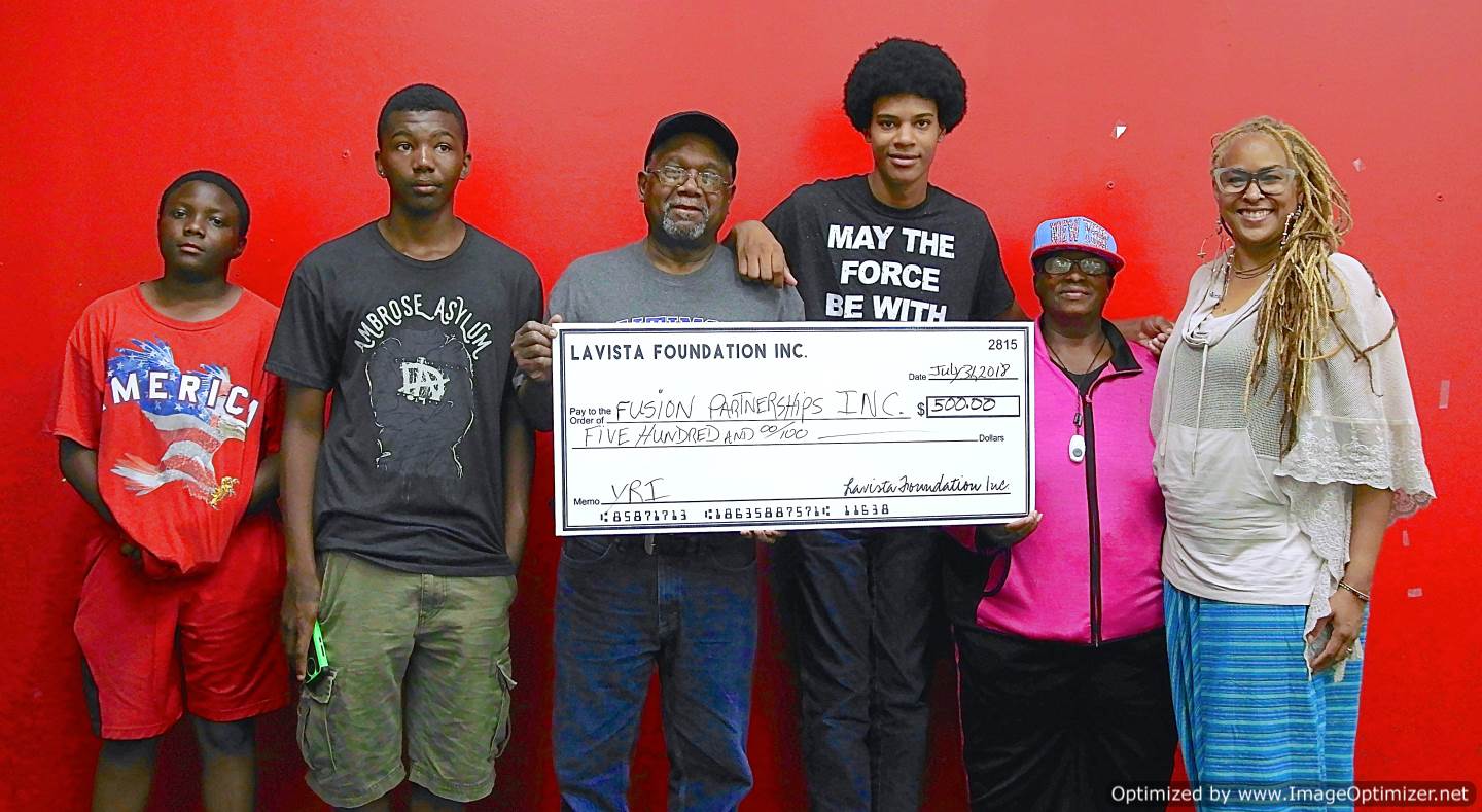 Lavista member Edwin Craddock presenting check to the Cherry Hill Community Youth Residency Program (Fusion Partnership Inc.) supporting youth in after school programs (ABOVE).