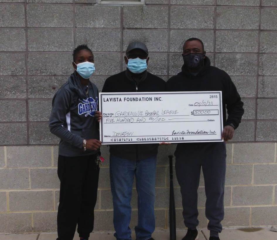 Lavista member Edwin Craddock presenting check to the Gardenville Baseball League (sponsorship for 2021)